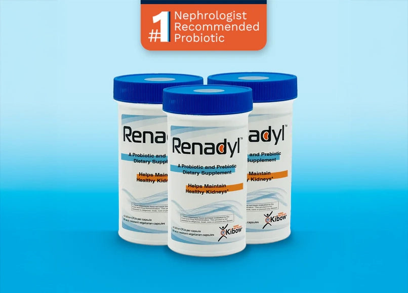 Renadyl™ is a natural option for maintaining healthy kidney function and improving quality of life. It is composed of three patented strains of probiotic bacteria, which use nitrogenous waste as food. Nitrogenous waste diffuses from the bloodstream into the colon through a natural process known as osmosis. In individuals with impaired kidney function, an increased amount of toxins diffuses into the large intestine (colon). Once toxins accumulate in high concentrations in the colon, Renadyl™ metabolizes them and reduces the concentration of toxins in the body. Due to its ability to metabolize nitrogenous waste products in the intestine, Renadyl™ helps maintain healthy kidney function and reduces stress on the kidneys.